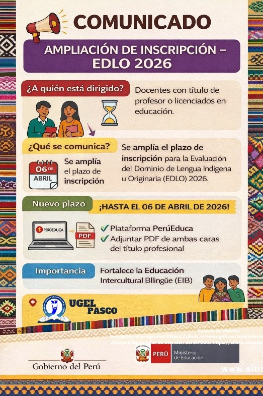 Modificación de cronograma del proceso de Evaluación de Dominio de la Lengua Indígena Originaria de Docentes (EDLO) 2026..![]()