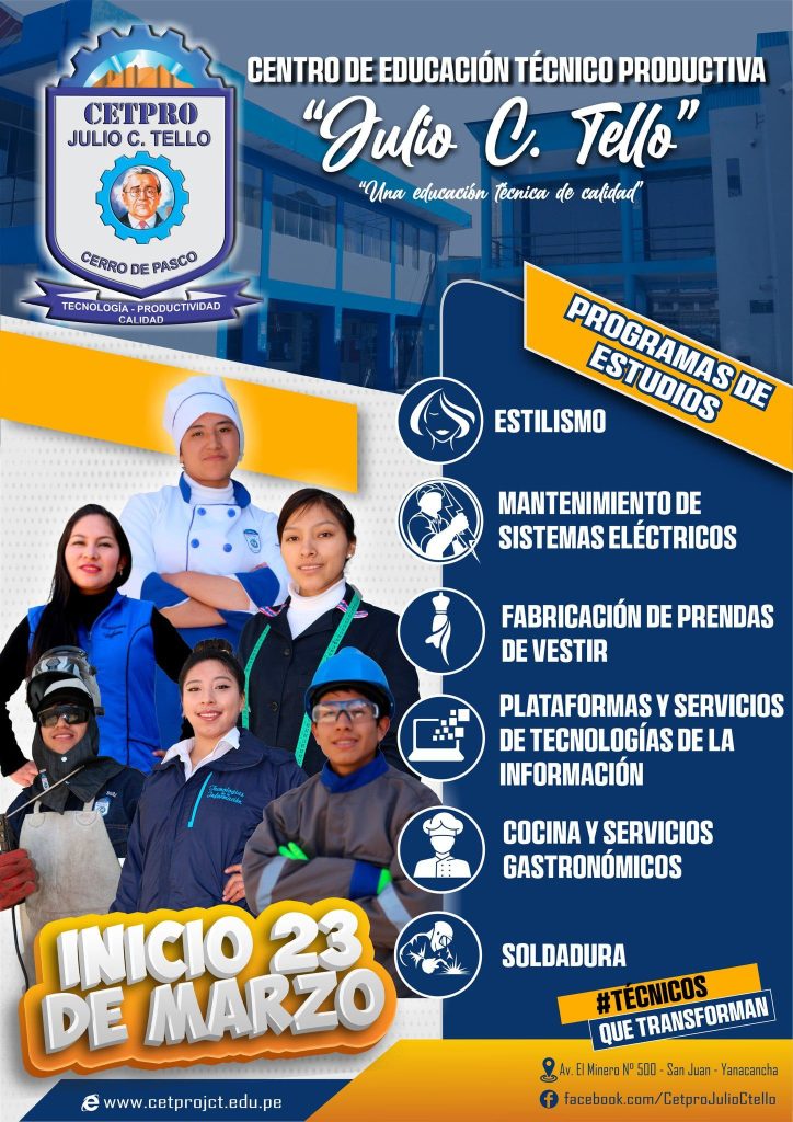 ¿Buscas una carrera técnica rápida, práctica y con alta demanda laboral? En el 𝐂𝐄𝐓𝐏𝐑𝐎 𝐉𝐮𝐥𝐢𝐨 𝐂. 𝐓𝐞𝐥𝐥𝐨 te ofrecemos programas de estudios diseñados para que te conviertas en un profesional técnico en solo 2 años. ¡Con vacantes limitadas, esta es tu oportunidad!...
