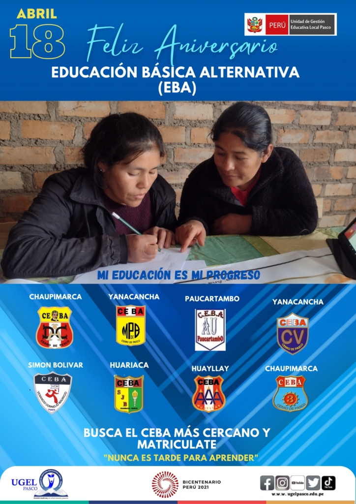 [#Feliz18Aniversario]#EBA Busca el CEBA más cercano y matricúlate